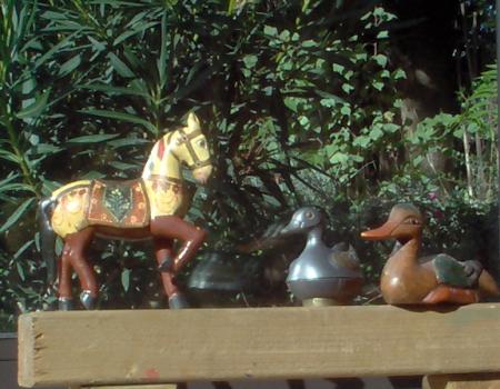 Lorsque Pauline était à la crèche, j’allais tous les lundis raconter des histoires. J’arrivais avec mon panier à histoires rempli d’oiseaux découpés dans du contre plaqué, de chevaux et autres objets poétiques ramenés de voyages . J’ai reçu un très bon accueil de la part de la Part de Christine Coustalat et de son équipe qui mets tout en œuvre pour apprendre aux enfants à bien vivre et à bien vivre ensemble. Même si je trouve que ces structures manquent généralement de personnel masculin, je regrette surtout l’absence de naturel dans les jouets mis à leur disposition, comme des planches, de la ficelle, des cartons.... Il y a, à mon goût, trop de plastique estampillé sans risque, trop de préfabriqué déjà normé. A mon sens cela ne laisse que peu de place à la découverte et l’imagination " témoigne Joseph Carret.